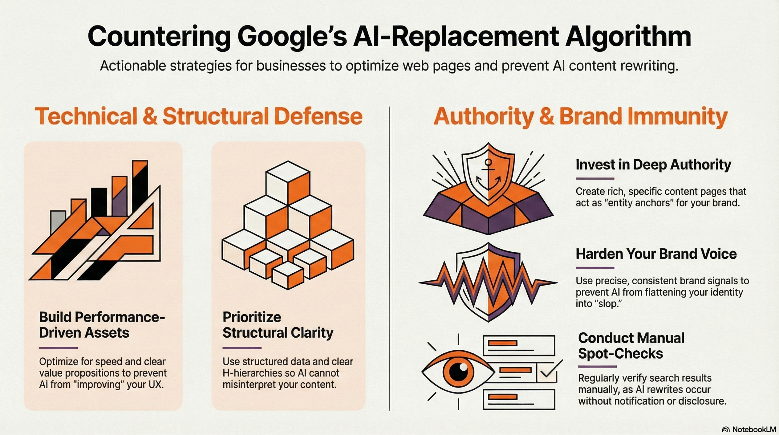 The best counter-strategy is building pages that are responsive, well-structured, authoritative, genuinely useful, topically deep, and entity-anchored.